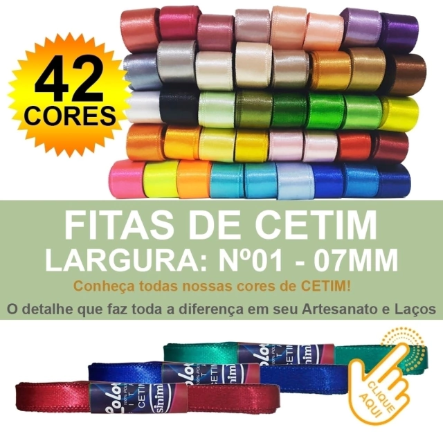 As Fitas de Cetim lisas da Sininbu ref. 9946/07mm / Nº 1, são fitas de 1ª linha no mercado nacional e você que preza por qualidade, não pode deixar de conhecer, com aproximadamente 48 cores em linha disponíveis, por isso não perca tempo, escolha as cores e quantidade e vá as compras, pois temos certeza que essas fitas farão a diferença em sua confecção de laços e artesanato em geral!