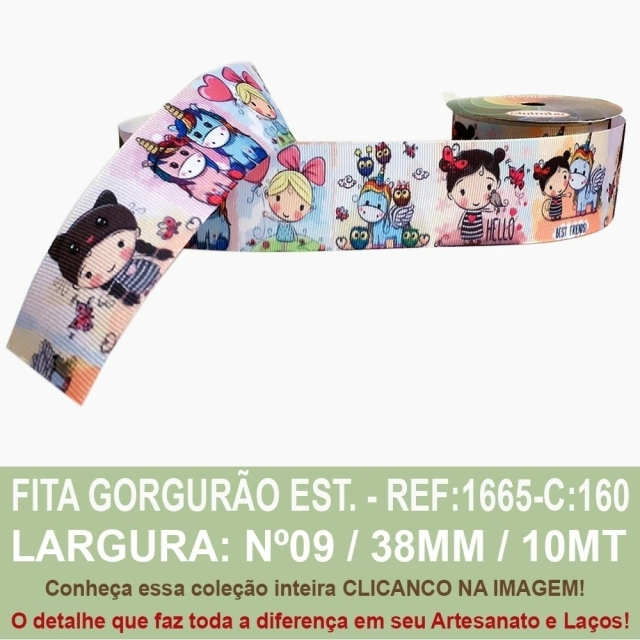 FITA GORGURÃO ESTAMPADO BONECA/UNICORNIO COR: 160 - REF: 1665/38/160 - SINIMBU