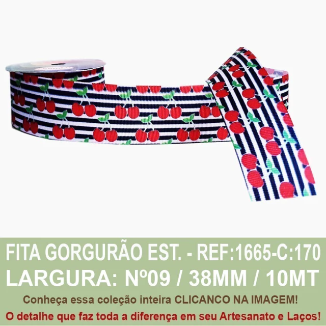 FITA GORGURÃO ESTAMPADO CEREJA COR: 170 - REF: 1665/38/170 - SINIMBU