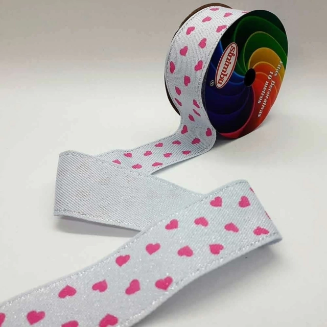 Fita Jeans Lurex/Coracao Rosa Sinimbu 10MT R:1861/38mm Nº9