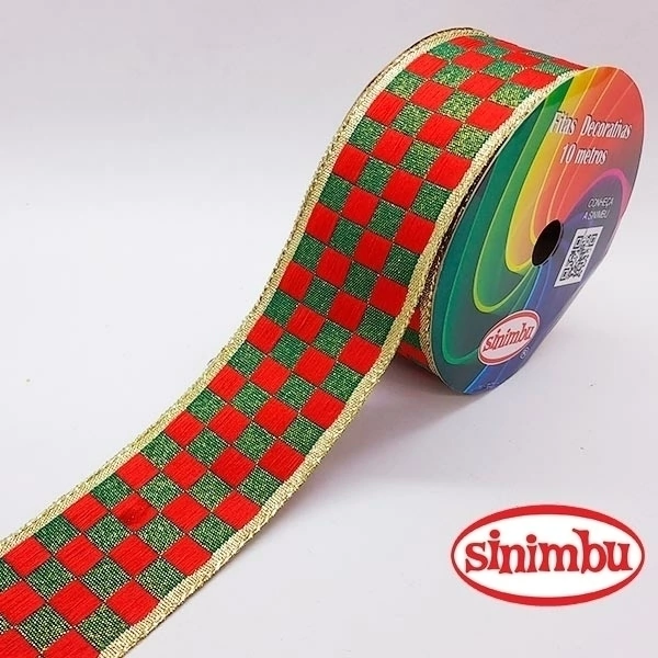 Fita Natalina Quadriculada - Verm/Vd Metalizada Lurex C03 - N°9 - 38mm REF 1831/38/03